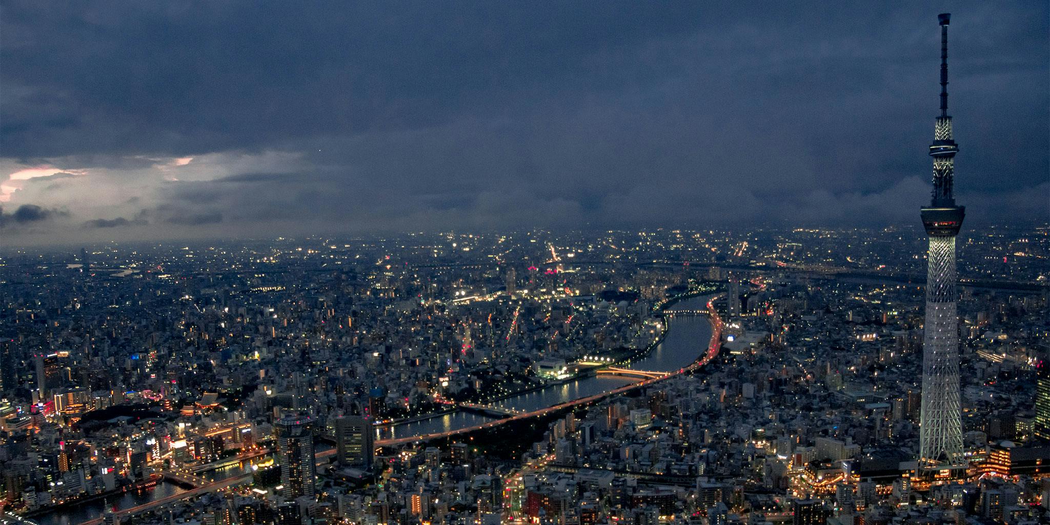 乘坐直升机直达东京天空树,欣赏东京夜景。 在东京东部地区巡游后,您可以在东京天空树旁欣赏东京夜景。 这是一个非常超值的计划,您可以用少量预算体验 22 分钟的夜航。
